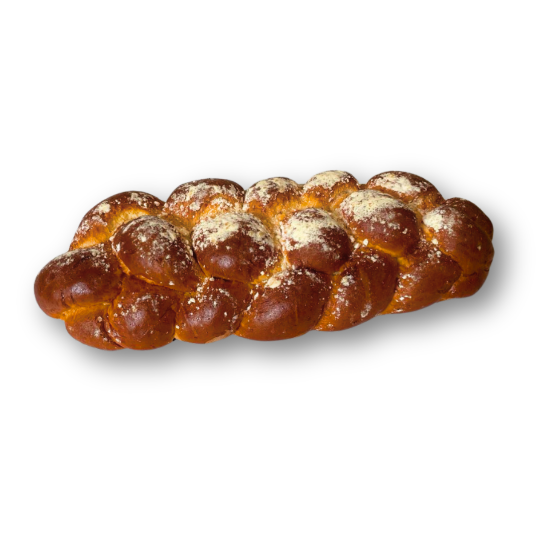 Традиційний калач з ніжною м’якушкою і солодкою ванільною крихтою зверху. Ідеальний вибір для сімейного чаювання та святкових зустрічей, що дарує тепло і затишок у кожному шматочку.